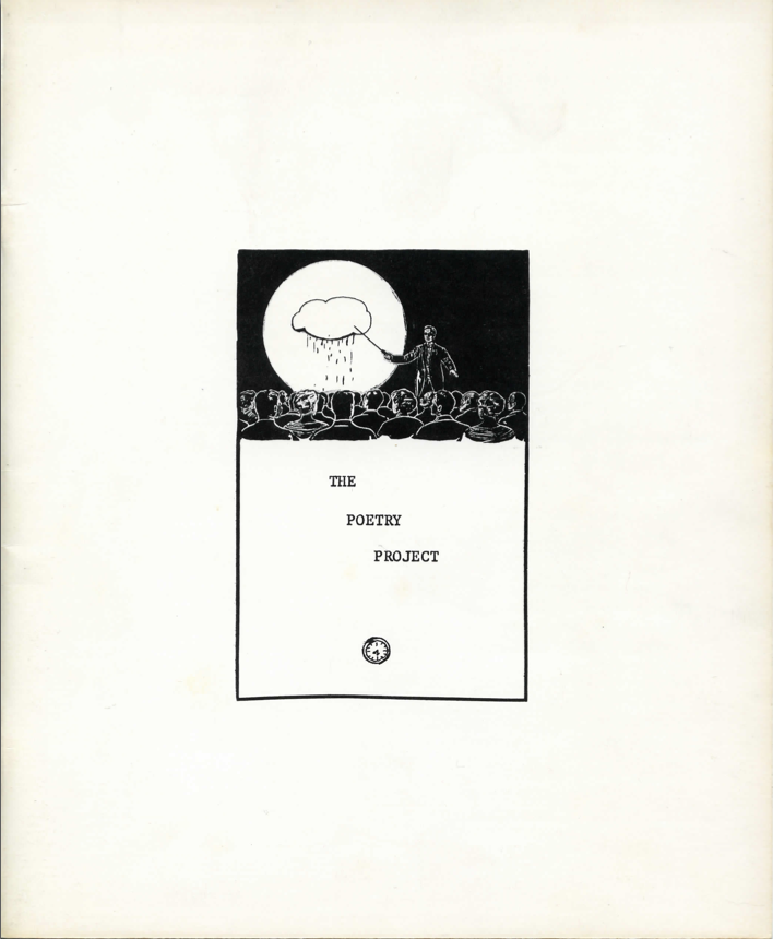 Recently unearthed from our collection is this 8″ x 9 1/2″ 1974 booklet for The Poetry Project, printed during Anne Waldman’s Artistic Directorship. The 24-page booklet, with cover art by George Schneeman, includes a number of great photographs taken at the Project, info about The Poetry Project and its staff and individual sections on the Wednesday Night Series, Open Readings, Performance Nights, Guest Poets, Workshops, Lecture Series, Publications, a list of Some of the Poets Who Have Read at The Poetry Project and Biographies of Staff and Workshop Teachers (Past and Present). It’s a real gem!