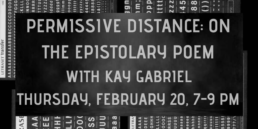 “I write myself a letter / instead of writing you,” the musician Arthur Russell wrote. What kinds of writing does the epistolary—writing a poem using the device of a letter—make possible? How does the epistolary poem capture or communicate the space it traverses between sender and addressee? How do the fictions of distance, elapsed time, or intimacy between the sender and the addressee change what’s possible for a poem to say—or how it’s possible for a poem to refuse to explain itself? We’ll use this Dis/Courses session to explore the curious permissiveness of the letter. We’ll read work in or about the epistolary by Ovid, Catullus, Bernadette Mayer, Sam D’Allesandro, Dodie Bellamy, John Keene and Shiv Kotecha, and we’ll practice writing epistolary poems—to ourselves, to each other, and to recipients dead or imaginary.