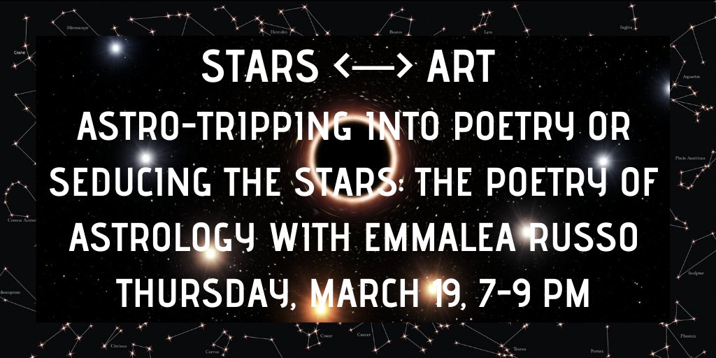 “No one should laugh at astrology, for he who no longer seeks to seduce the stars is the sadder for it,” wrote Baudrillard. In this generative convo / workshop, we will look at the work of ancient and contemporary thinkers who seduced/got seduced by the cosmos — as well as some of the foundational texts that serve as a stellar gateway into the heavenly spheres and poetic situation. We’ll discuss astrology as a language and metaphysical/poetic apparatus for engaging with our own work and the wor(l)d. The packet of multi-disciplinary work will include readings from Marcus Manilius, The Hermetica, astrological natal charts, ancient alchemical imagery, and contemporary poets.