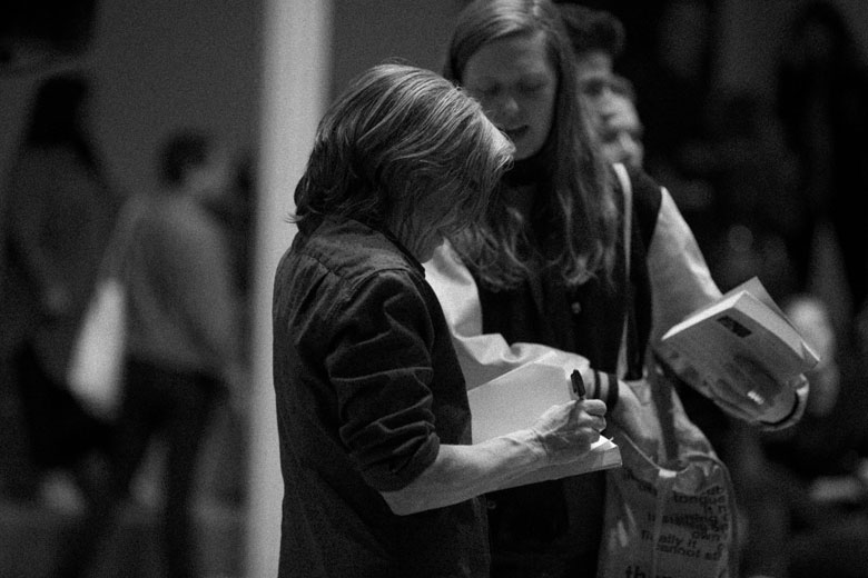 Ted Roeder’s Photographs from “Eileen Myles & Friends” – 5/3/14 May 7, 2014 Kim Gordon Kim Gordon Crowd at front door Director Stacy Szymaszek & Eileen Myles Eileen Myles Kim Gordon Body/Head -Kim Gordon & Bill Nace Bill Nace Eileen Myles Sheila Heti Eileen Myles Hilton Als Eileen Myles Hilton Als Mira Gonzalez Kim Gordon Eileen signing books Ted Roeder Ted Roeder is a photographer who does portraits of poets, artists, musicians and performers. He has been documenting the Poetry Project’s New Year’s Day Marathon Reading since 2012. PrevIntroduction for Kevin KillianNextMel Bentley, Abraham Adams & Purdey Lord Kreiden – February 23, 2015